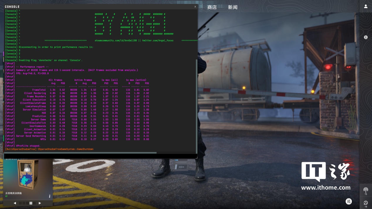 第一款《CS2》,以 1080P 分辨率 + 高画质运行创意工坊测试地图 CS2 FPS BenchMark,锐龙 9 9950X3D 的游戏平均帧数为 746 帧,1% Low 帧为 283 帧。