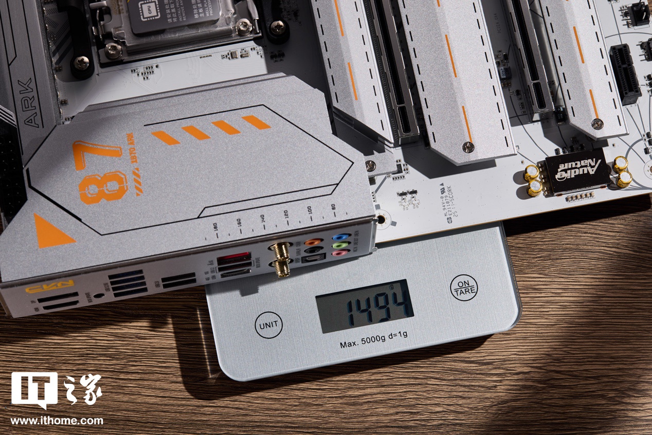 尺寸方面,IT之家实测 CVN X870 ARK FROZEN V14 方舟主板的长宽分别为 24.6*30.2cm,属于标准的 ATX 板型,上称重量约 1.49kg。