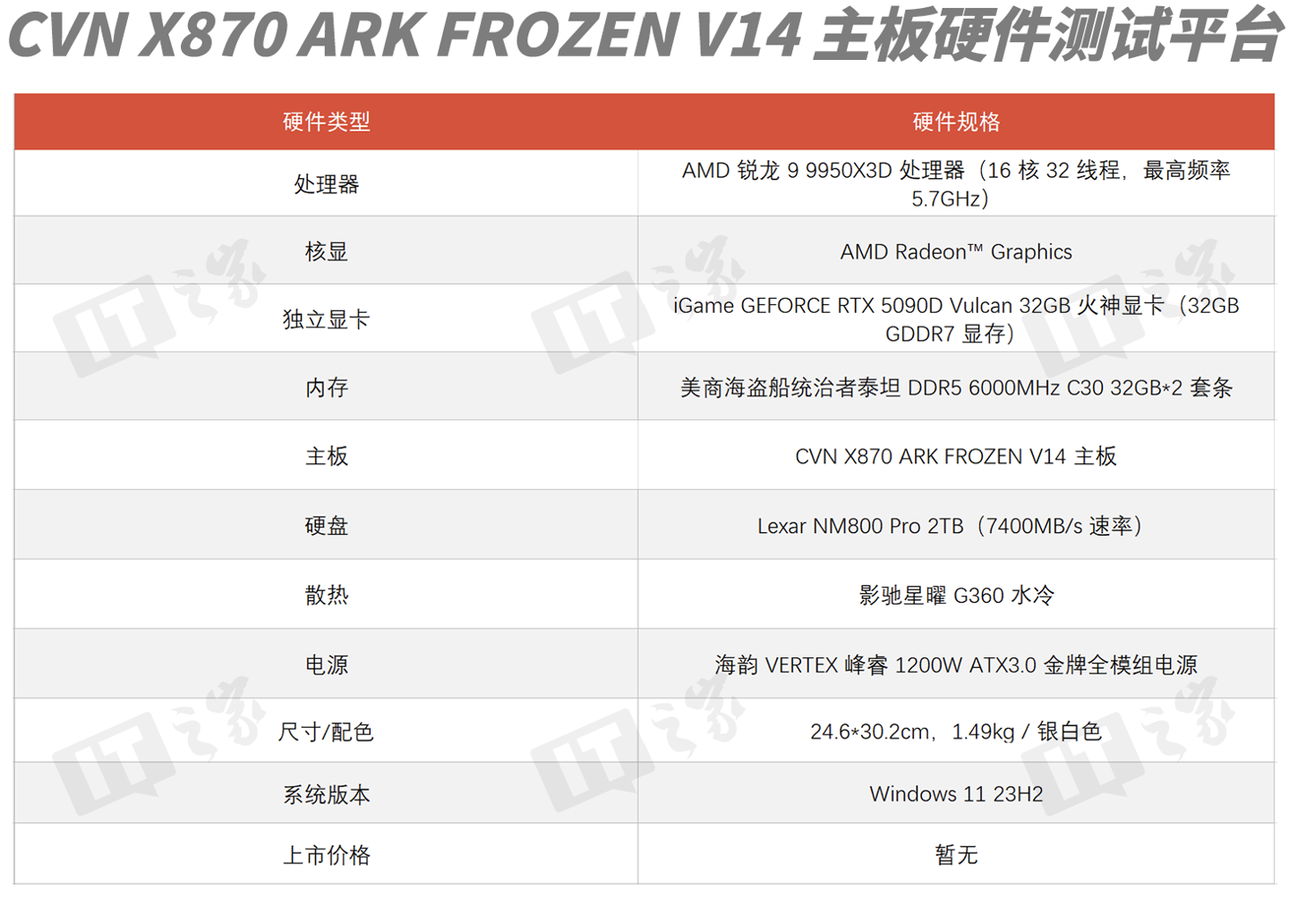 本次我们选择使用 AMD 最新推出的锐龙 9 9950X3D 处理器搭配 CVN X870 ARK FROZEN V14 方舟主板进行实测,为了充分发挥处理器的性能,IT之家搭建了以上这套测试平台。