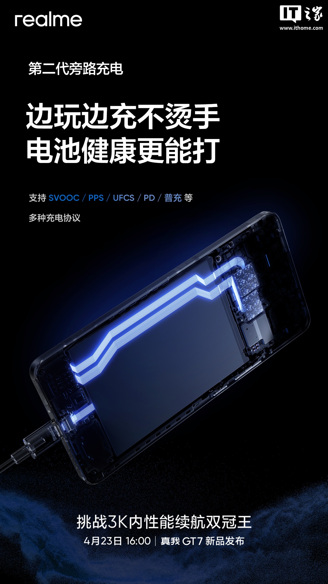 文章来源于互联网:realme 真我 GT7 手机全面支持第二代旁路充电,适配 SVOOC / PPS / UFCS / PD 等充电协议