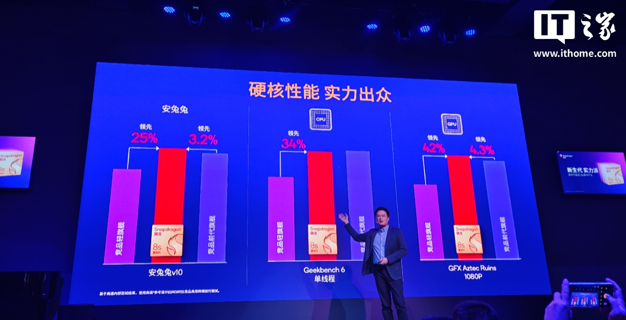而IT之家认为,第四代骁龙 8s 的发布,将旗舰级体验普及到更广泛的用户群体,本质上也是整个智能手机行业的一种进步,因为它大大提升了次旗舰产品的市场竞争力,助力终端厂商们持续打造出更丰富多元的产品以满足更多细分人群的消费需求,横向来看就是在提升整个智能手机终端市场的体验层级和水平,同时也能反向推动顶级旗舰产品持续拿出领先行业的创新,开拓更前沿的领域,这何尝不是行业整体的一种进步?