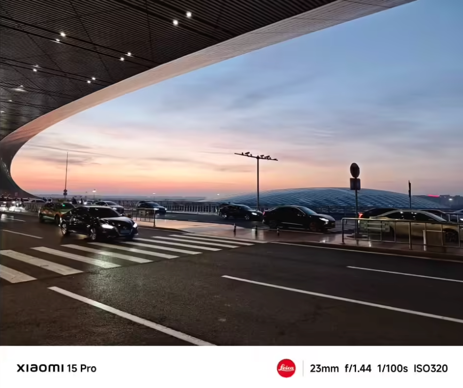 比如下面这张暗光下拍摄的机场傍晚的照片,光线环境同样非常复杂,有渐暗的天光、有车灯、有照明灯,但是小米 15 Pro 这张照片给人的第一观感就是对光影的还原很出色,亮部不过曝、暗部有细节,阴影过渡细腻自然,光影到位,把夜色的氛围感还原得很真实。这固然有手机影像光学系统的作用,但也离不开骁龙 8 至尊版在影像信息和算法处理方面提供的强大支撑。
