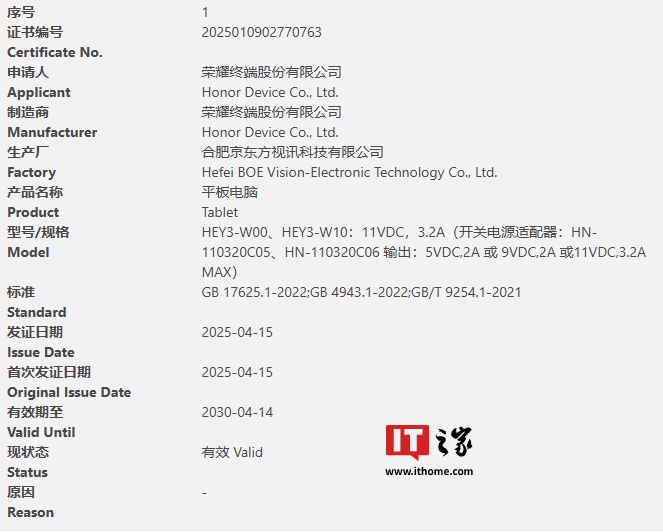 据IT之家此前报道,荣耀 X60 GT 手机此前已经通过 3C 认证,显示支持 90W 快充。有消息称该机配备高通骁龙 8+ Gen 1 处理器,提供 12GB 内存和 256GB 存储规格版本。除了荣耀 X60 GT 手机之外,荣耀 HEY3-W00 和 HEY3-W10 两款平板也通过 3C 认证,显示支持 35W 充电。