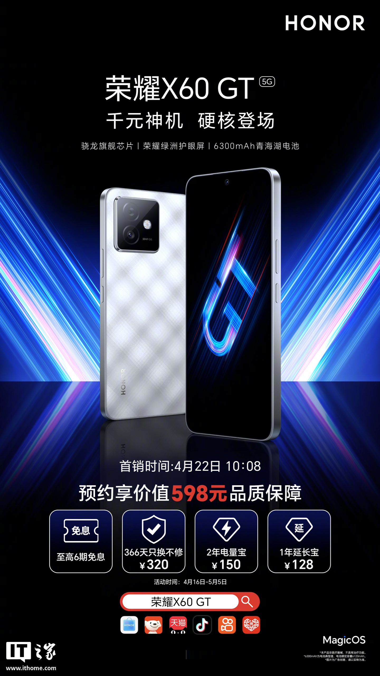 文章来源于互联网:荣耀 X60 GT 手机官宣:骁龙旗舰芯、6300mAh 电池,4 月 22 日首销
