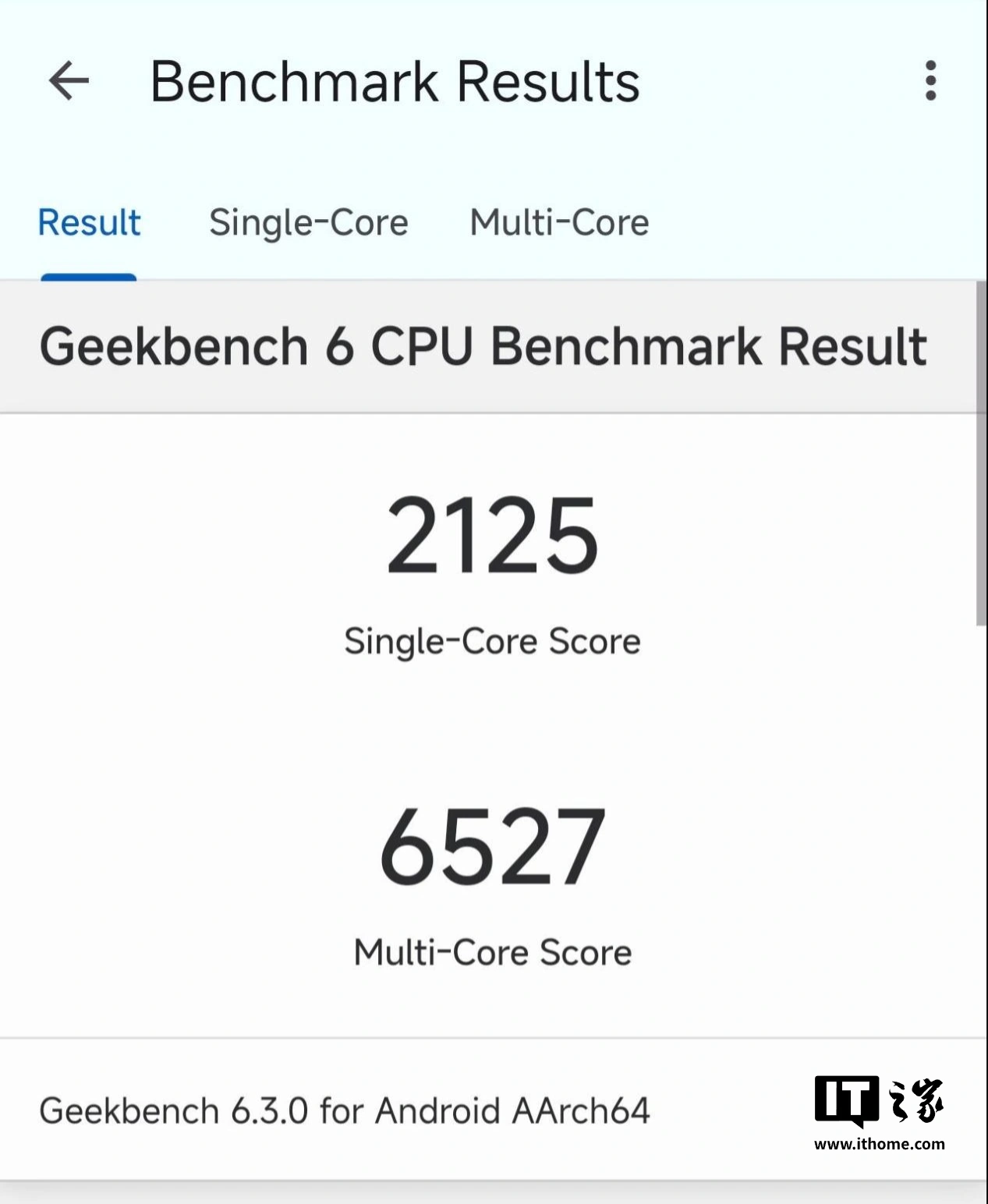 在 Geekbench 6 的测试中,骁龙 8s Gen4 处理器跑出了单核 2125 分,多核 6527 分的表现,同样也是骁龙 8 Gen3 的水平。