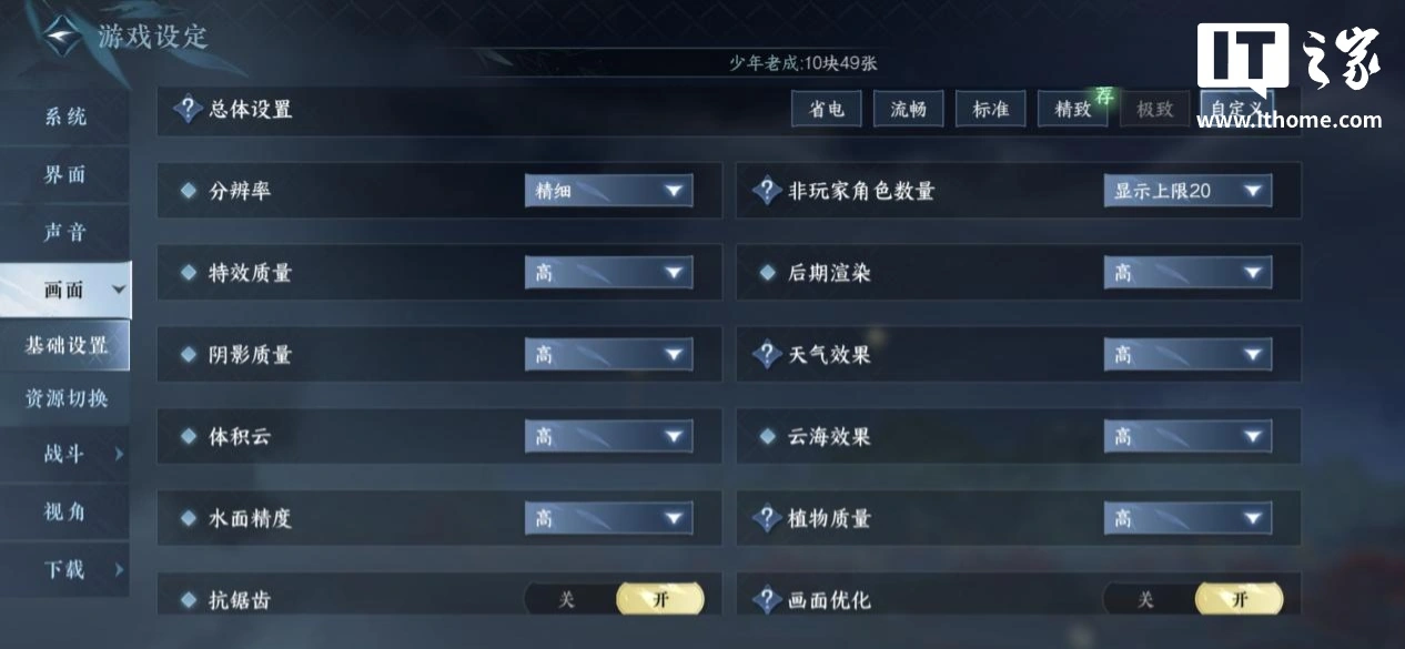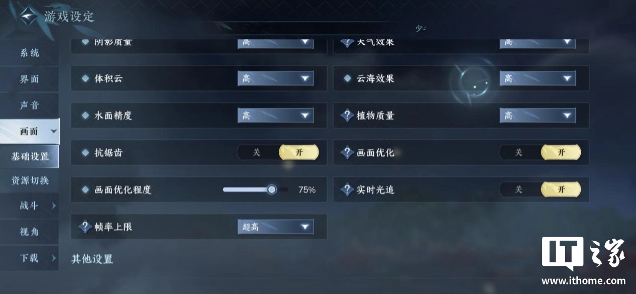 最后我们还测试了性能压力同样不小的开放世界手游《逆水寒》,这款游戏的画面选项非常多,还支持了实时光追,我们尽可能将选项都调到最高进行测试。