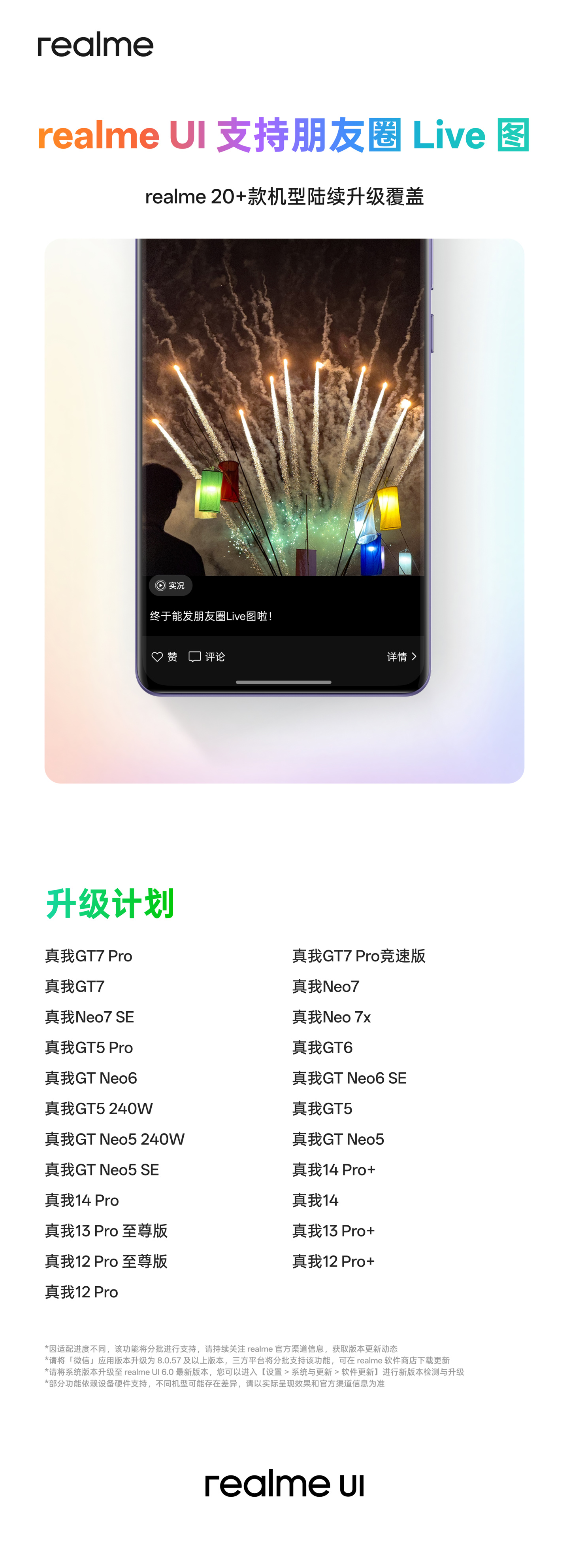 文章来源于互联网:realme UI 6.0 支持朋友圈 Live 实况照片,陆续升级覆盖真我 GT7 在内 20+ 款机型