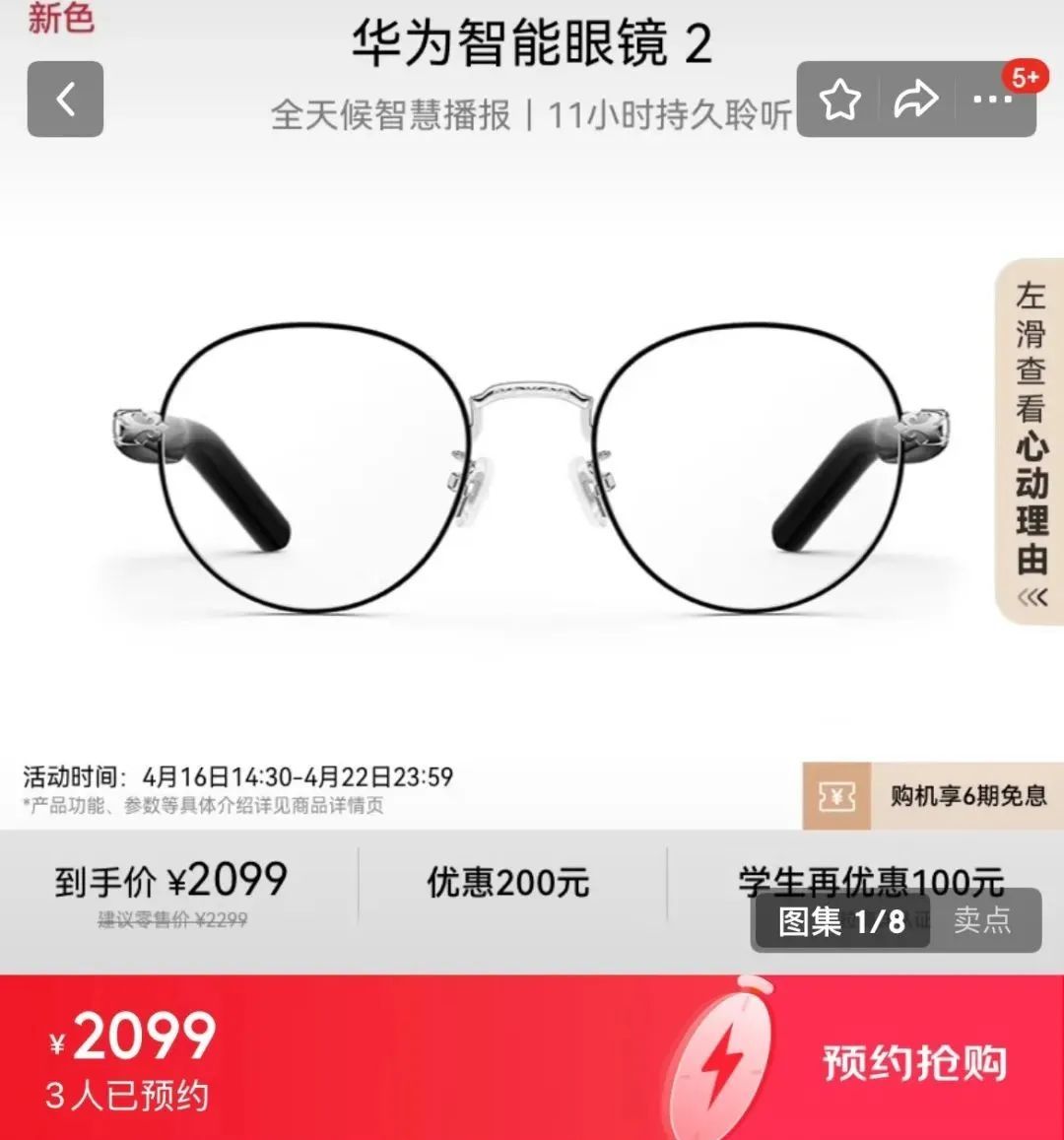 4 月 16 日,华为跑步下场,华为 智能眼镜2全新款式钛空圆框光学镜 正式亮相。余承东现场“代言”,称自己也是该款眼镜的用户。