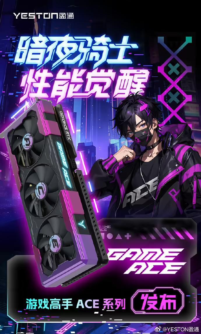 盈通发布游戏高手 ACE 系列显卡,赛博朋克风格设计