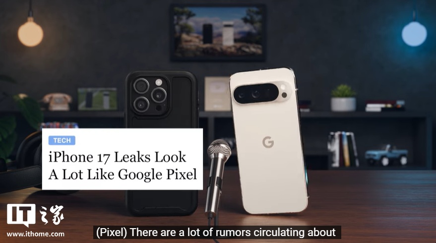 文章来源于互联网:苹果 iPhone 17 摄像头设计撞脸 Pixel?谷歌发短片进行调侃