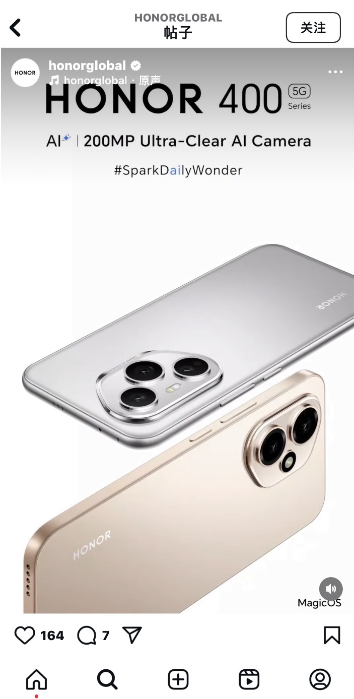 根据之前网上流传的消息,荣耀 400 系列海外版将拥有两款机型,分别为荣耀 400 标准版和荣耀 400 Pro 版。根据本次官宣的海外版 ID 设计,荣耀 400 标准版将采用直屏设计与后置双镜头模组,Pro 版后置则为三镜头模组。